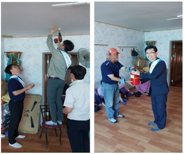 (주)계양정밀은 지역사회 동참 및 계양가족이라는 공동체 의식 함양의 일환으로 6월 21일과 7월 2일 총 2회에 걸쳐, 김천시, 면 소재지 내 홀로 지내는 독고노인 및 소년소녀 가장 주택에 소화기 및 화재 감지기 설치, 노후화된 시설등을 수리하는 봉사활동을 진행하였다. 올해 명절 전후로는 고아원과 요양원을 방문하여 어려운 이웃에게 조금이나마 위로가 될 수 있도록 할 예정이다.